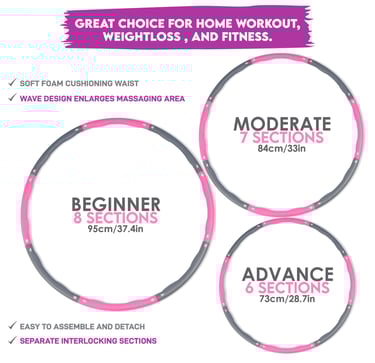 Hula hoop experts recommend beginning with a hoop that comes up to somewhere between your waist and mid-chest when it's lying on its side on the ground. Check the A1R Fitness Hula hoop images to understand the level of expertise.